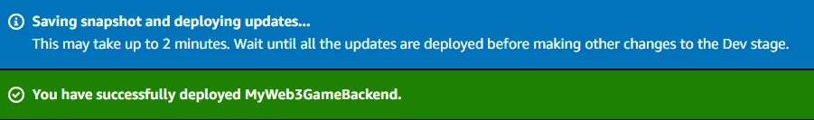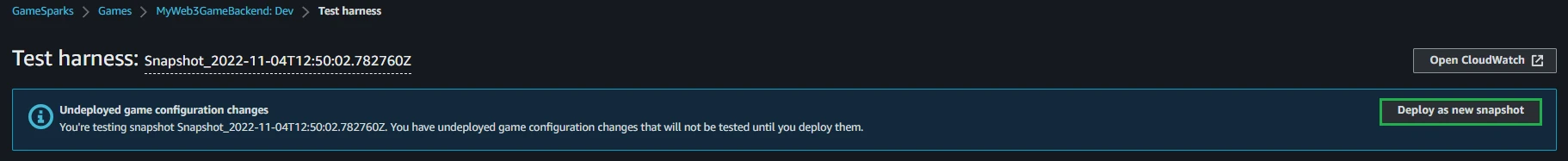 You'll see there's a notification. Because we just added a new request to the game backend, we need to deploy a new snapshot. Let's do that: