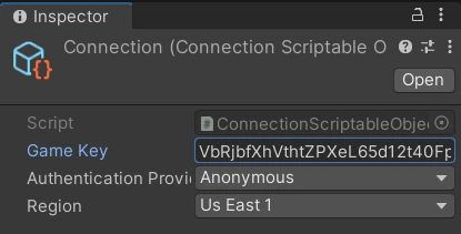 Now on the Inspector tab you'll now see the Amazon GameSparks connection settings, with a Game Key to fill up:
