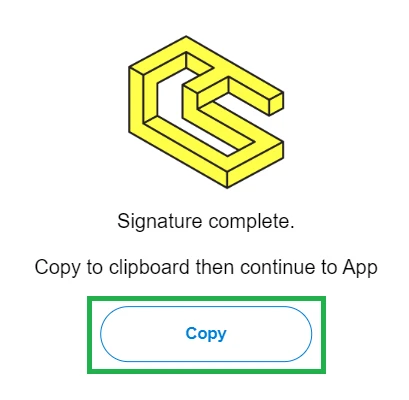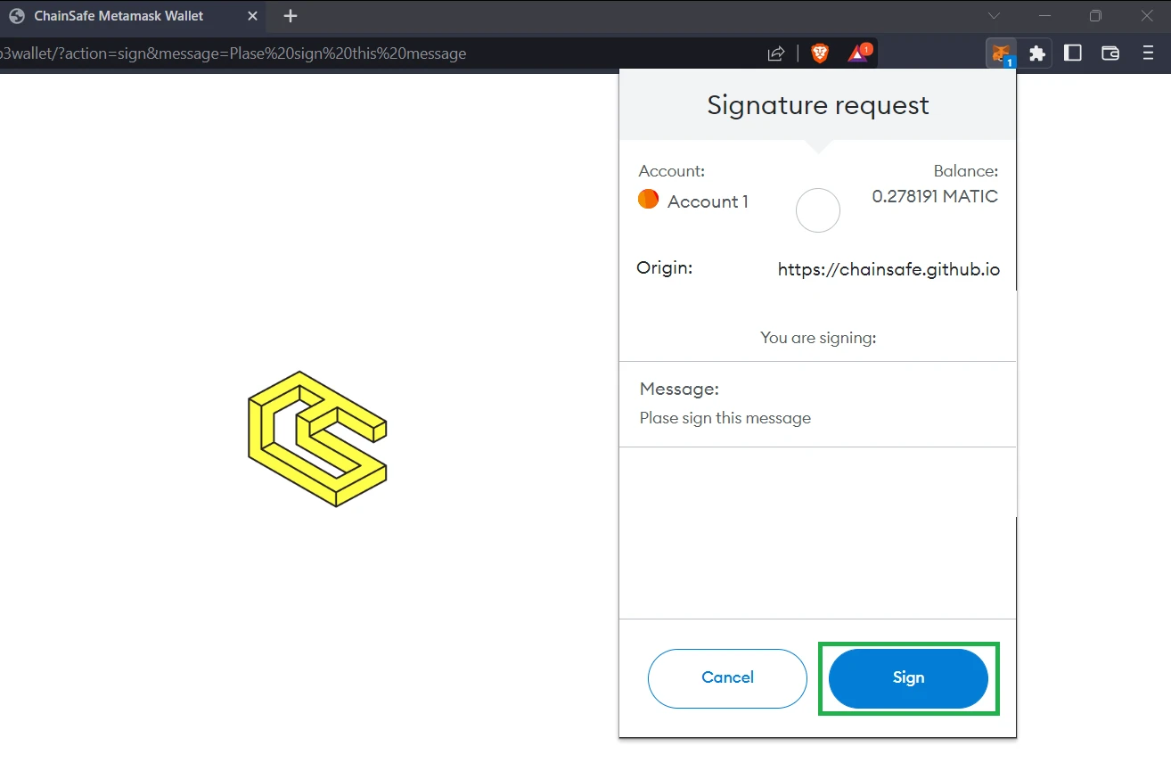 Your default browser will open automatically and if you have a Web3 wallet installed you'll be able to sign:
