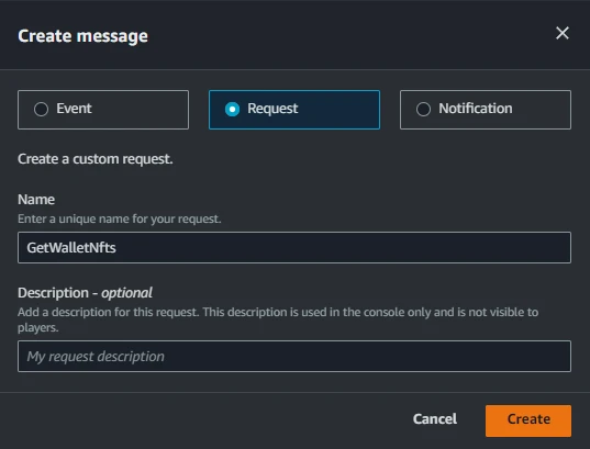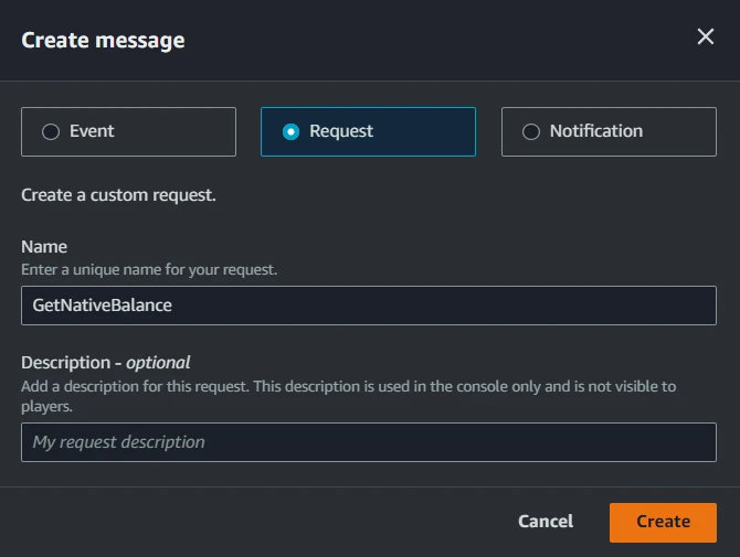 For this example we'll use requests, so that our client (Unity) can get data from our Amazon GameSparks backend. As said, this request will internally call a Lambda function from Lambda App with multiple functions and will return a response.