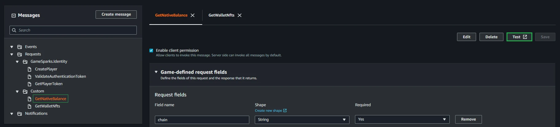 In this request, we want to call the GetNativeBalance Lambda function created here. You can see we do that by calling: