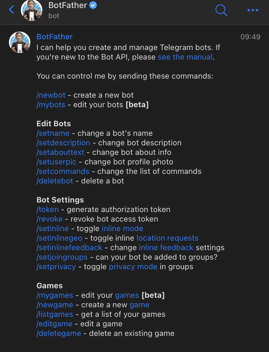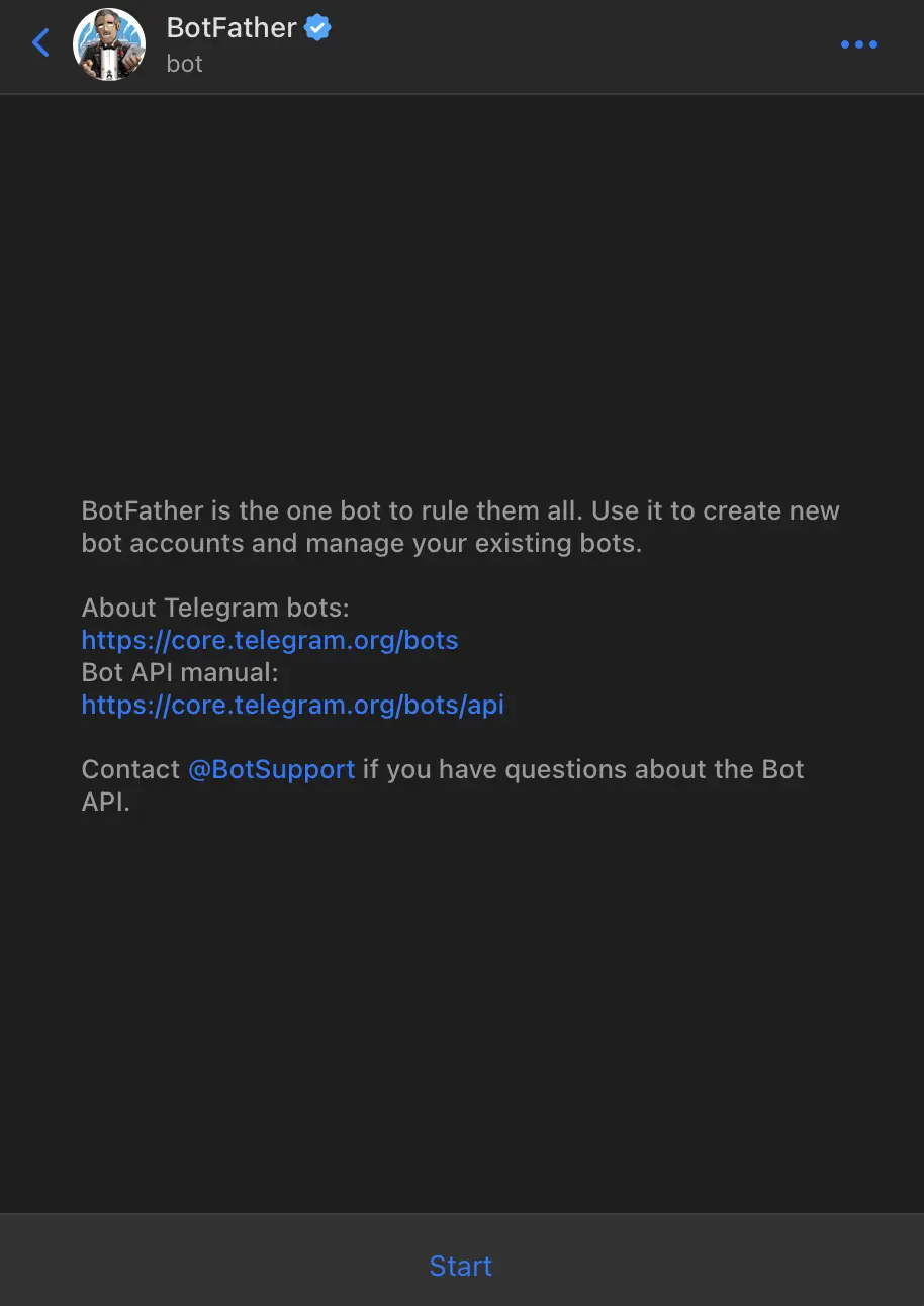 - Open Telegram and start a new chat with BotFather.
