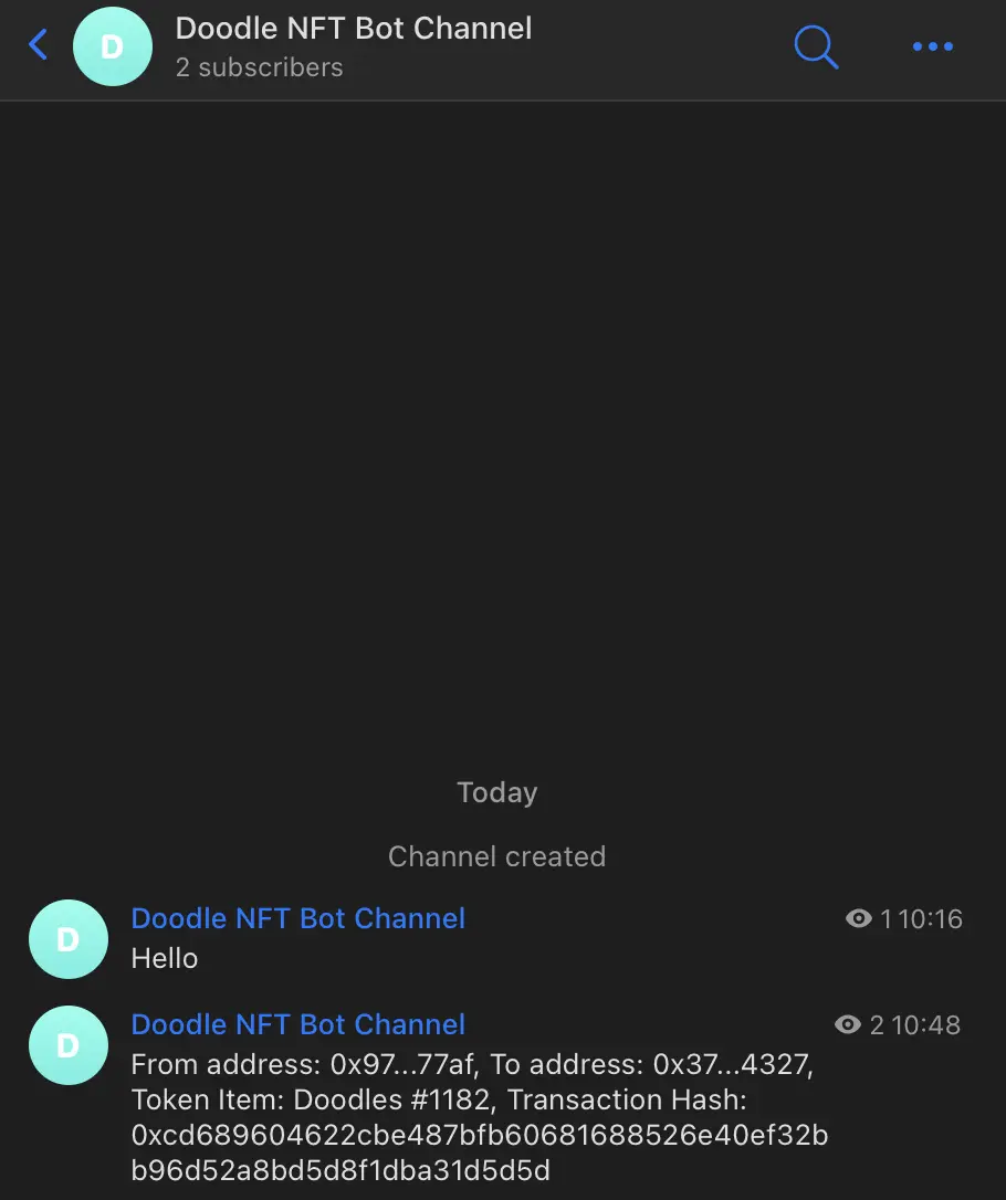 - Open up the Telegram channel we created and wait for notifications.