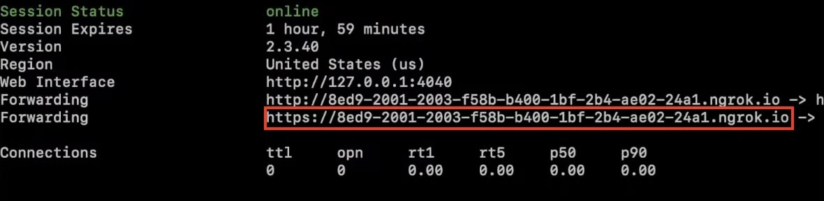 ngrok httpto create a tunnel to our express app using the same port that we specified insideindex.js