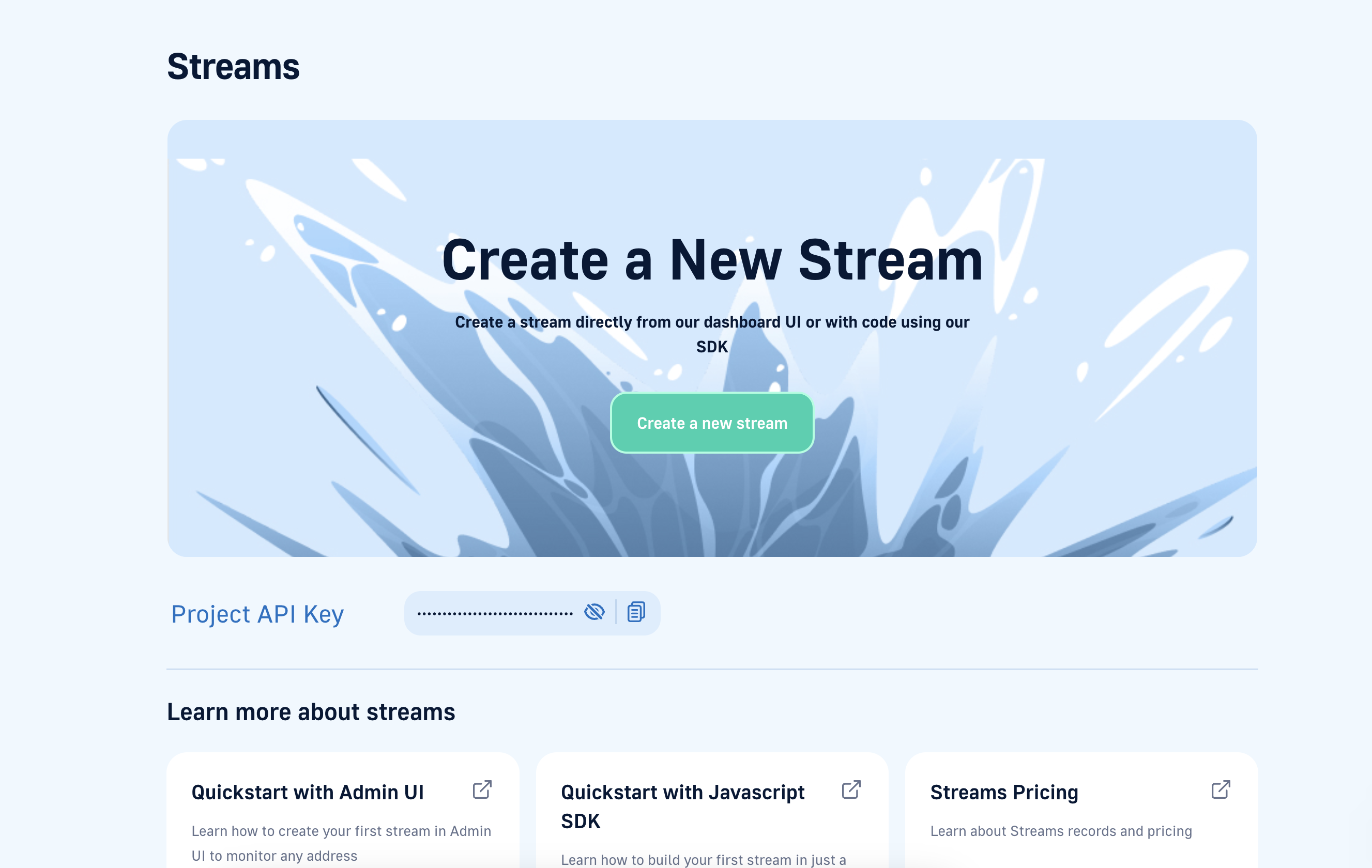 Inside our admin panel access streams section and create a new stream.