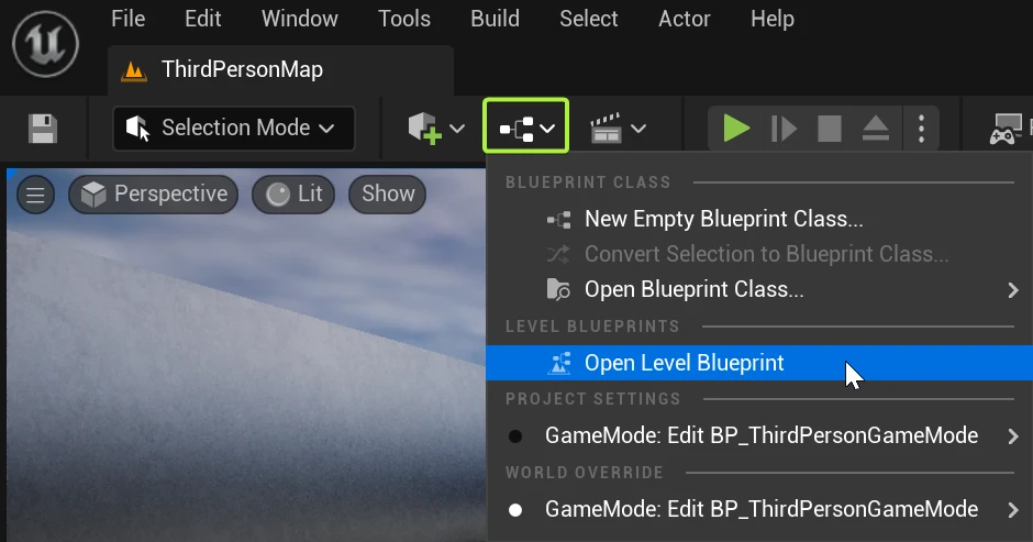 On the editor, click the blueprint icon and choose Open Level Blueprint: