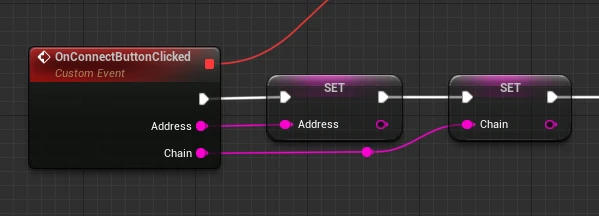 Apart from enabling and disabling the player's input, here we get the wallet address and the chain ID from the text input fields when the START button is clicked and we save them as variables: