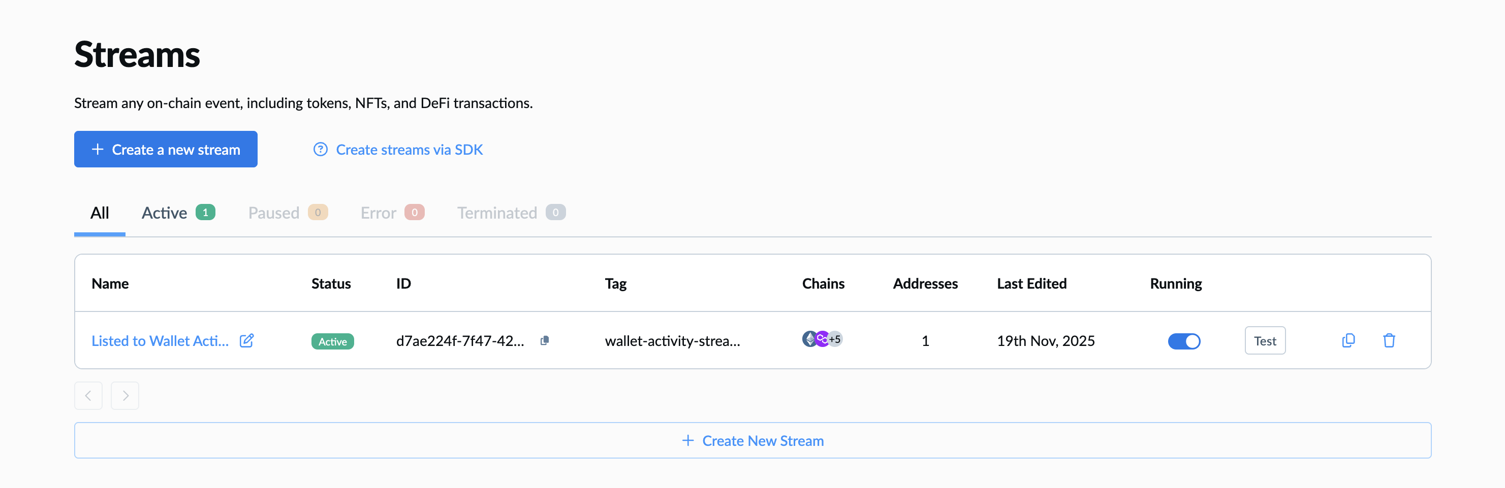 2. Click on Create a new Stream b utton.