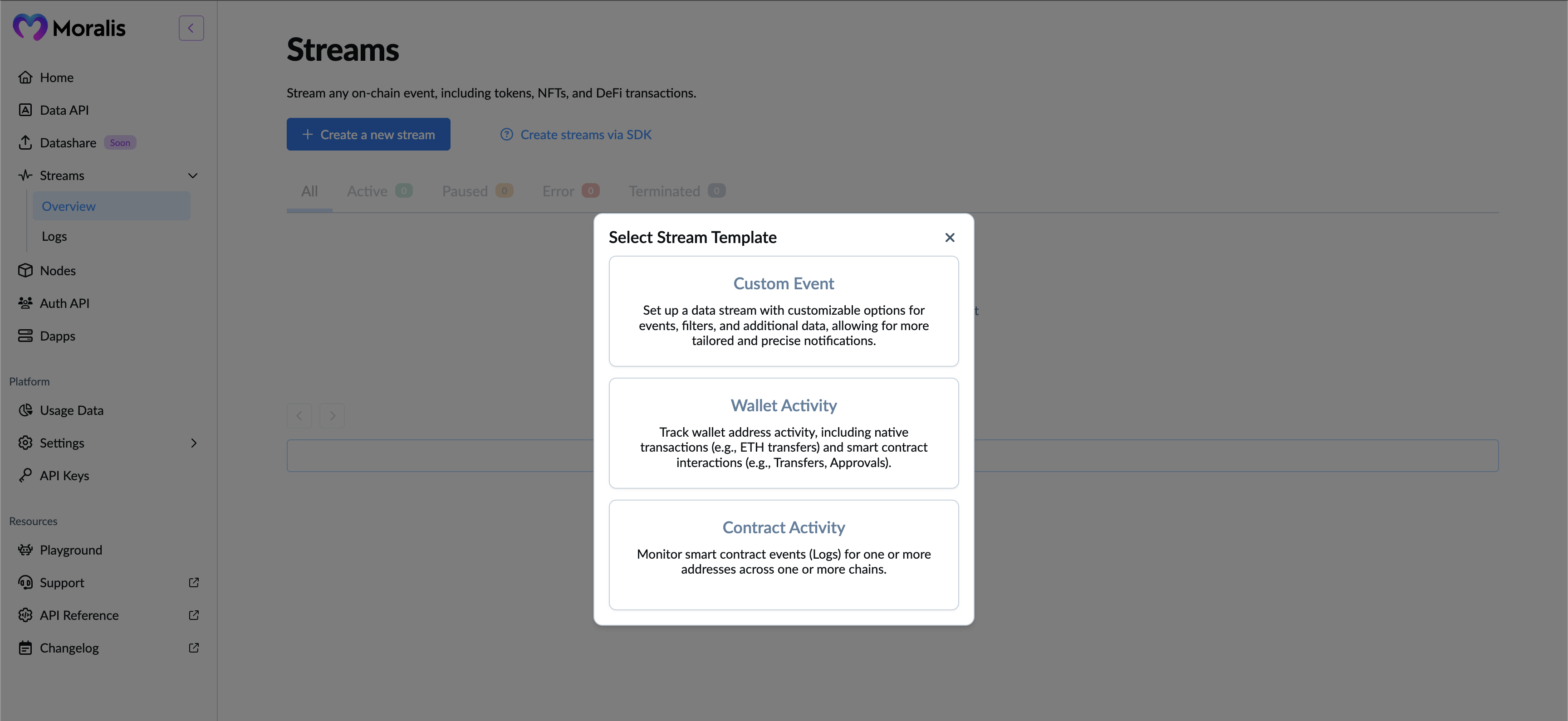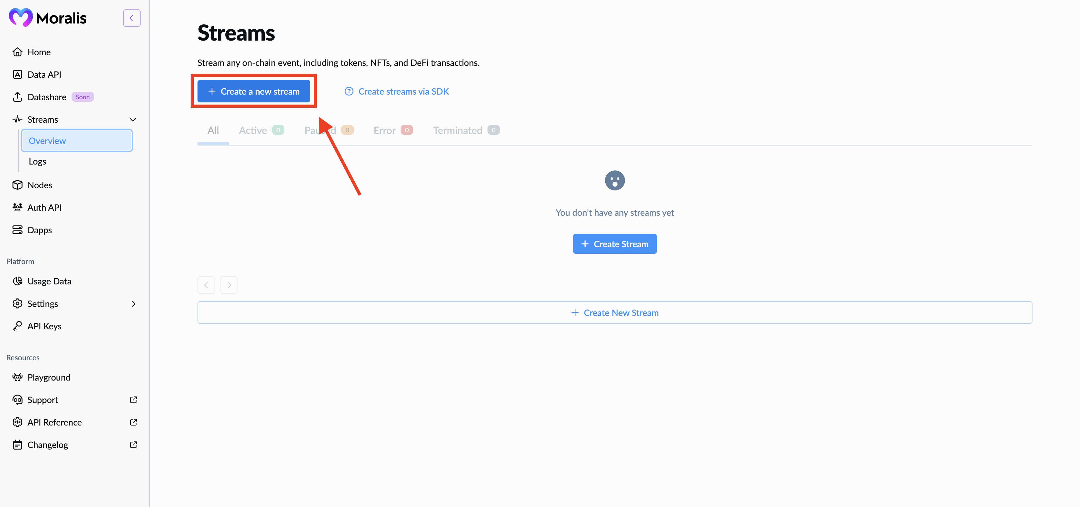 1. Go to http://admin.moralis.com/streams.