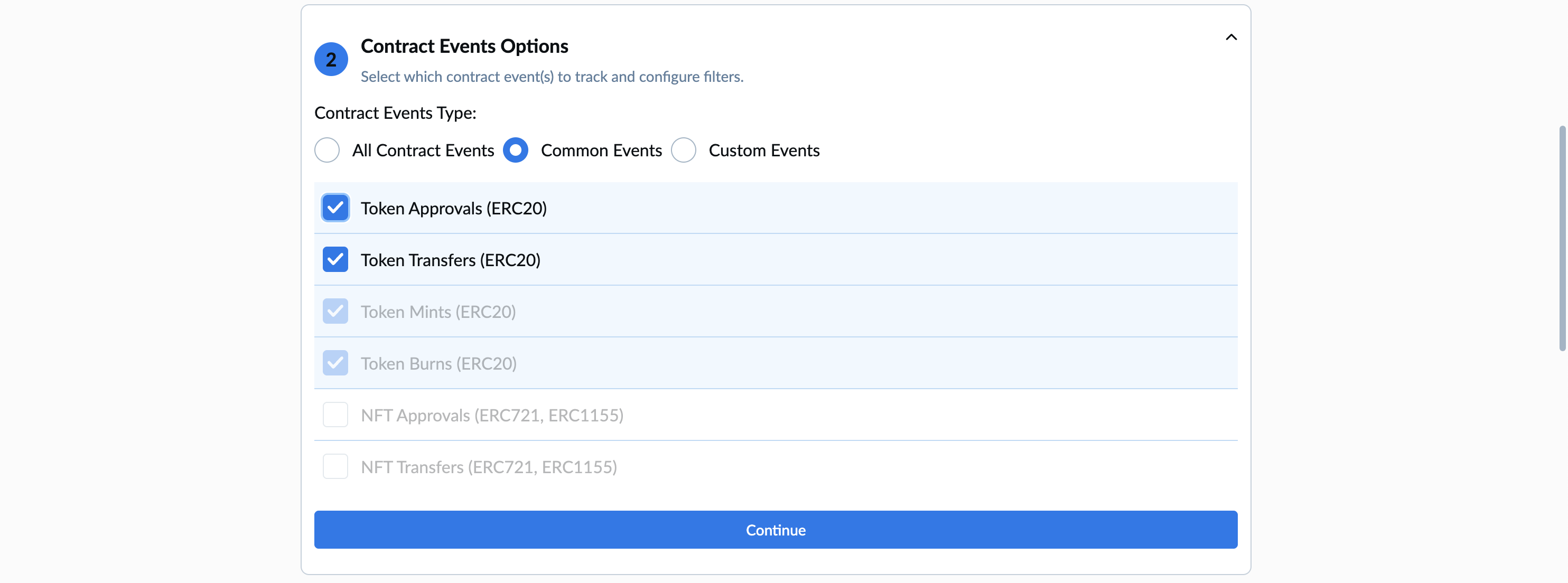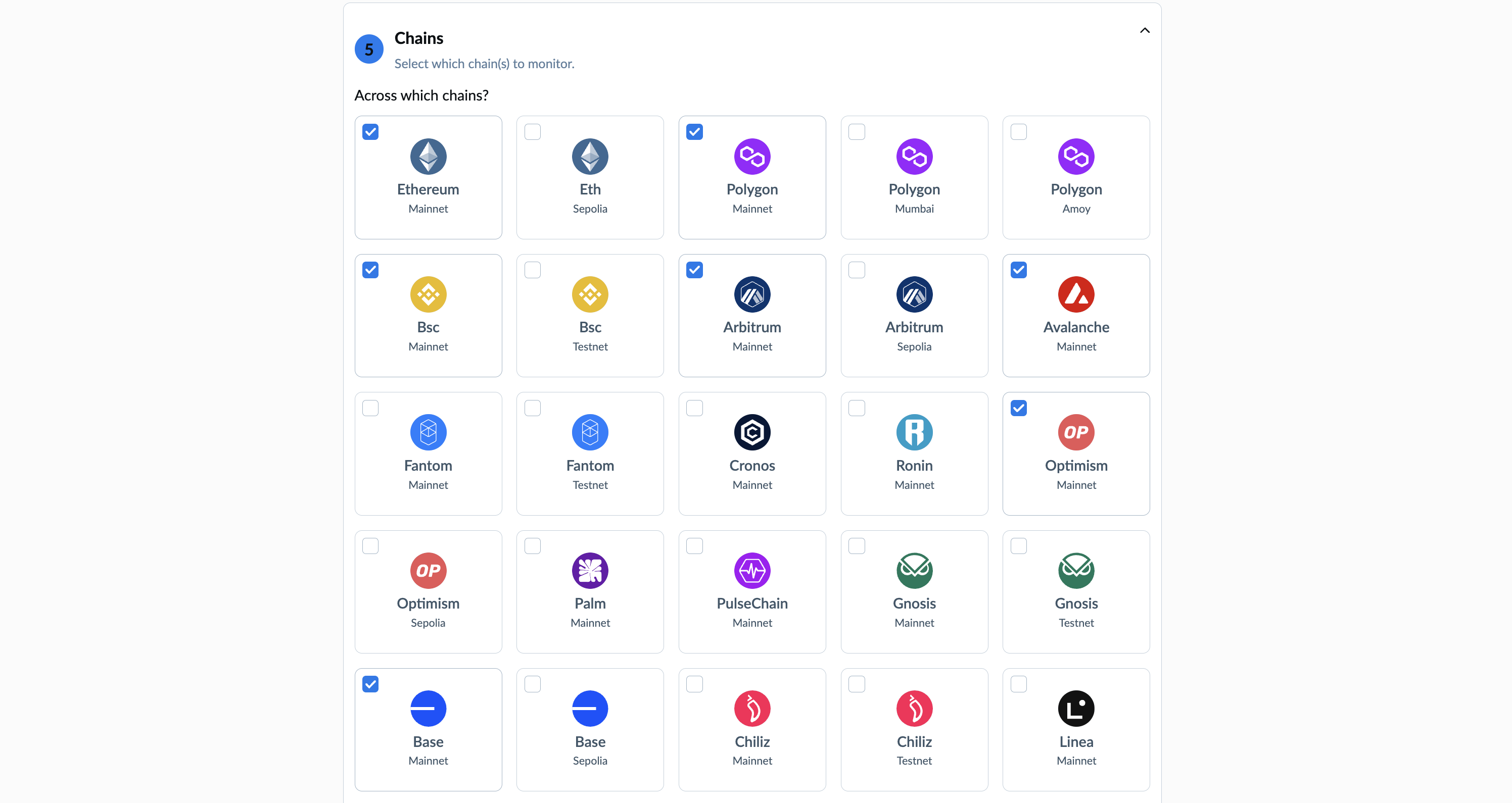 5. Pick what chain should be tracked.