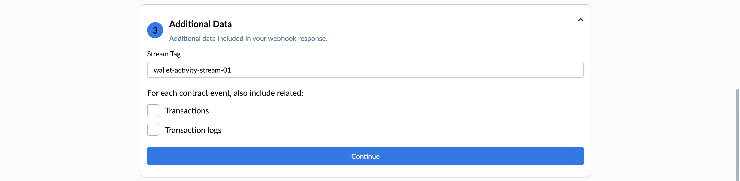 3. Tag for your stream and choose if you wish to receive additional data.