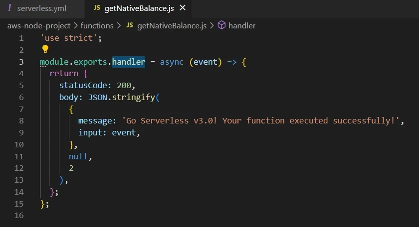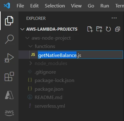 To start, let's use the existing handler.js. Rename it to getNativeBalance.js: