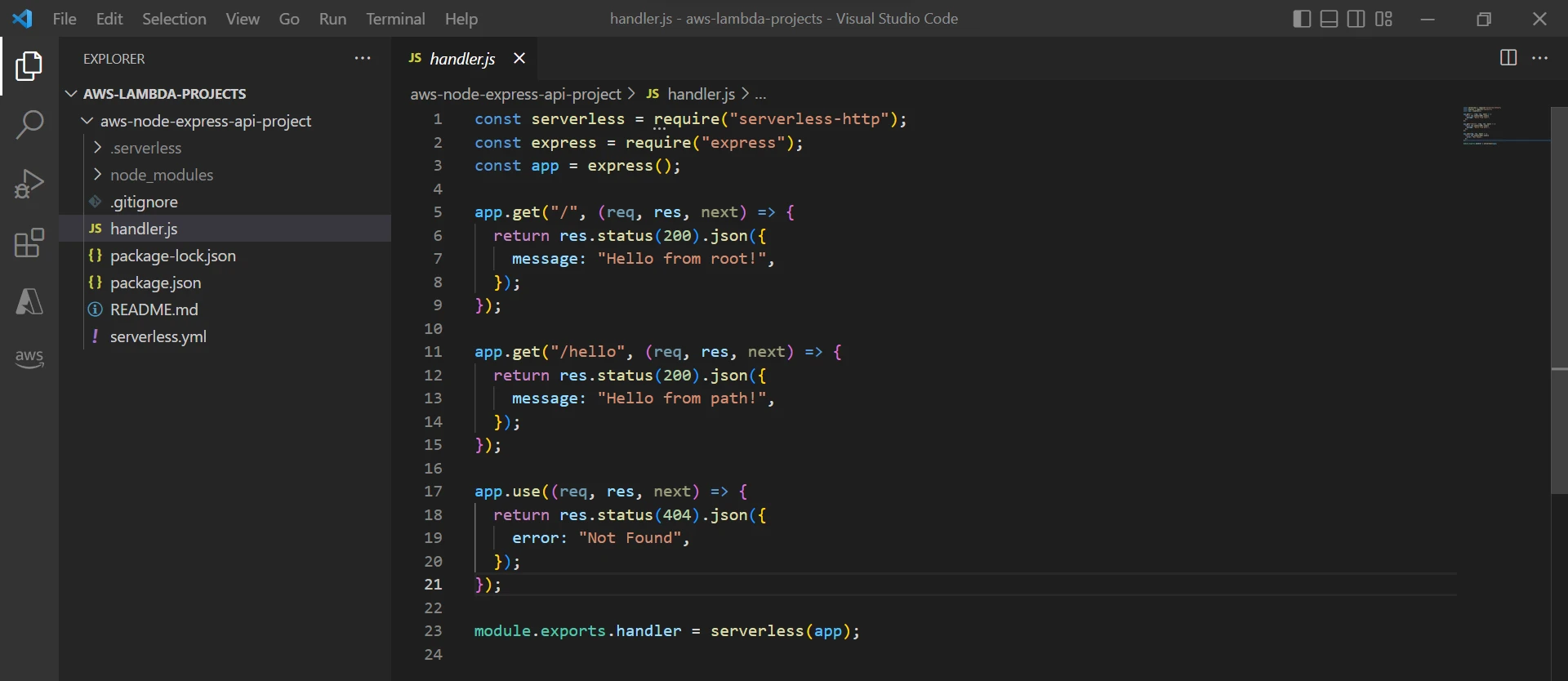 Very nice! And the best thing is that if you make a change in handler.js file, it will be automatically applied and you'll see the result the next time you hit the endpoint. This rapidly improves development time.