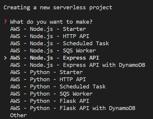Running this command should give you some options. Choose Express API: