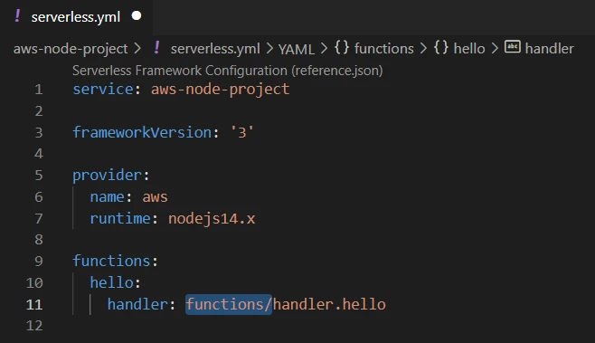 Now we have to open serverless.yml and set the new location of handler.js: