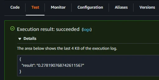 Then choose Test and see the result: