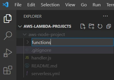 Now, let's create a new folder inside the project named functions as we will be creating multiple functions and placing them there: