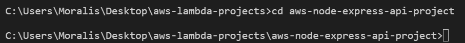IMPORTANT: On the terminal, place yourself at the root folder of the project. I named my project aws-node-express-api-project so in my case I need to run: